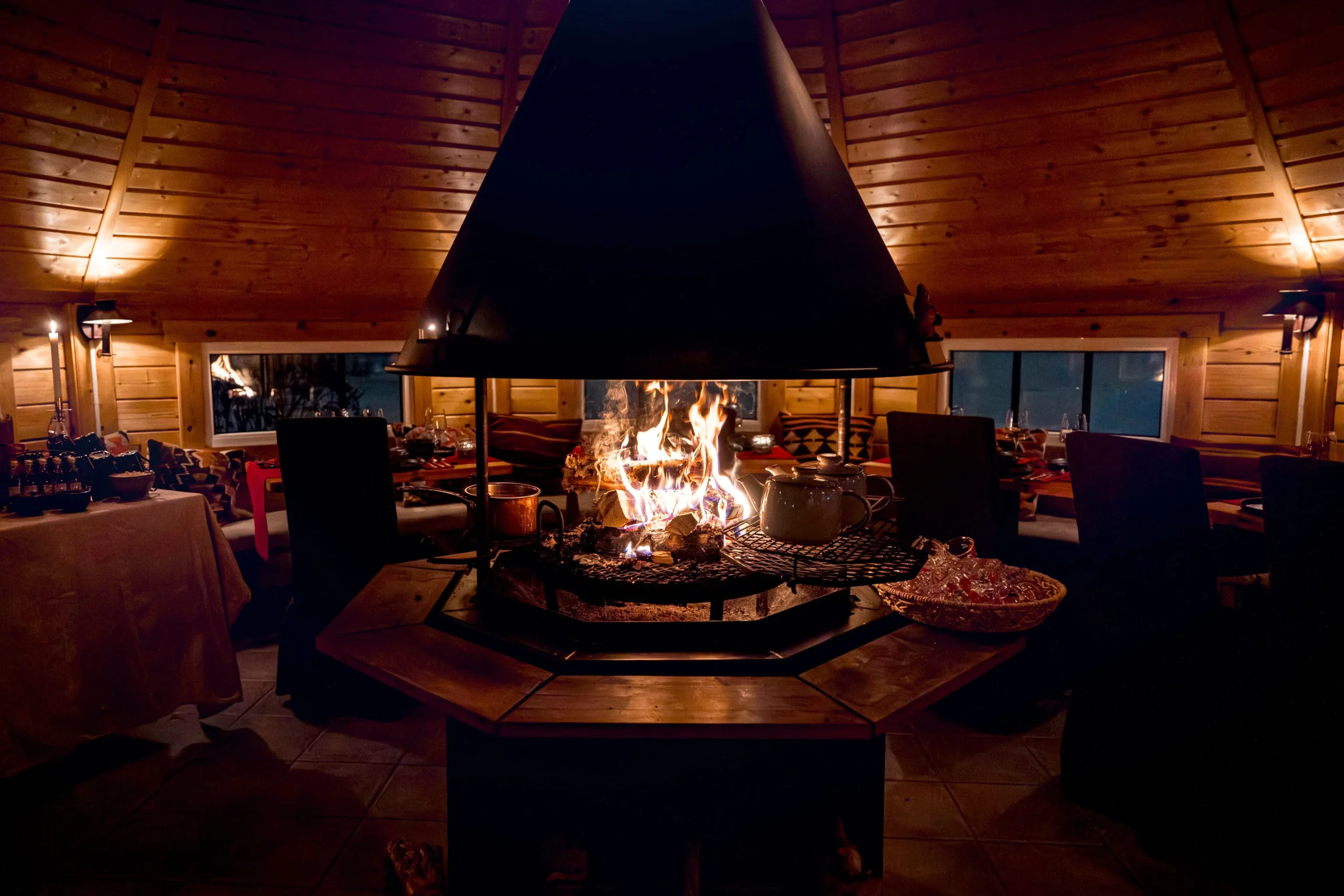 Njut av vår goda trerätters- meny  i älvskåtan. Här äter ni runt en öppen eldstad, varmbonat med egen servitris för kvällen! Ni ryms som mest 24 personer i kåtan och som minst 6 personer. Kåtan är gratis att hyra!